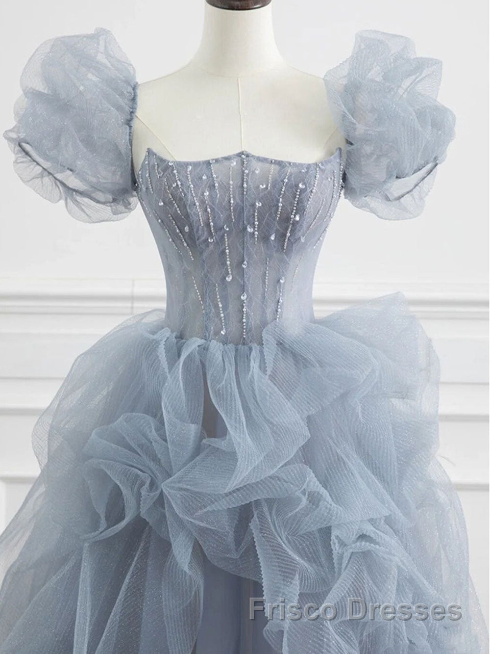 Gray tulle beads long Formal Prom Dresses, gray tulle formal Dresses
