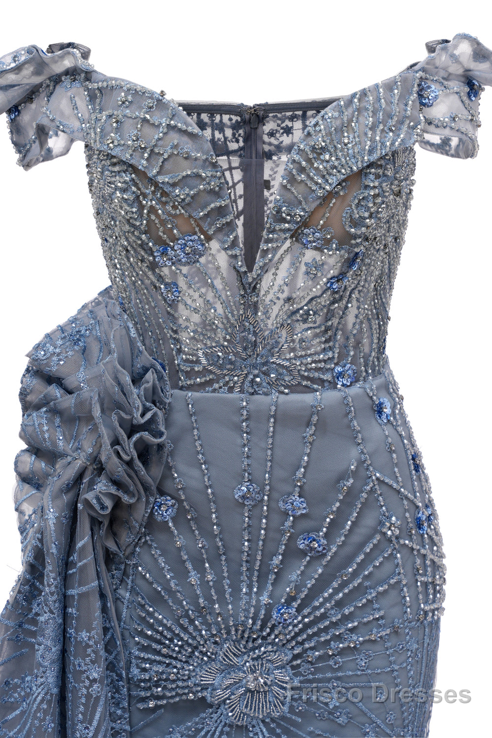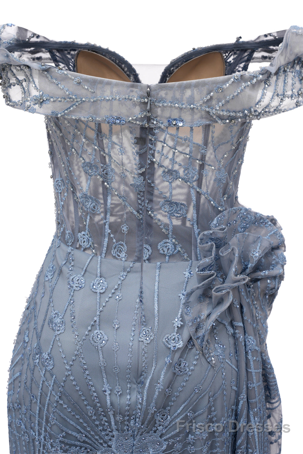 Grey Prom Dresses Mermaid Beading Tulle Off the Shoulder Women Evening Dresses