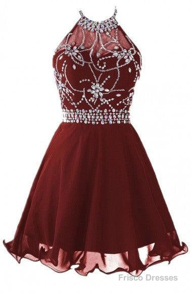 Halter Short Backless Chiffon Brown Homecoming Dress With Beading