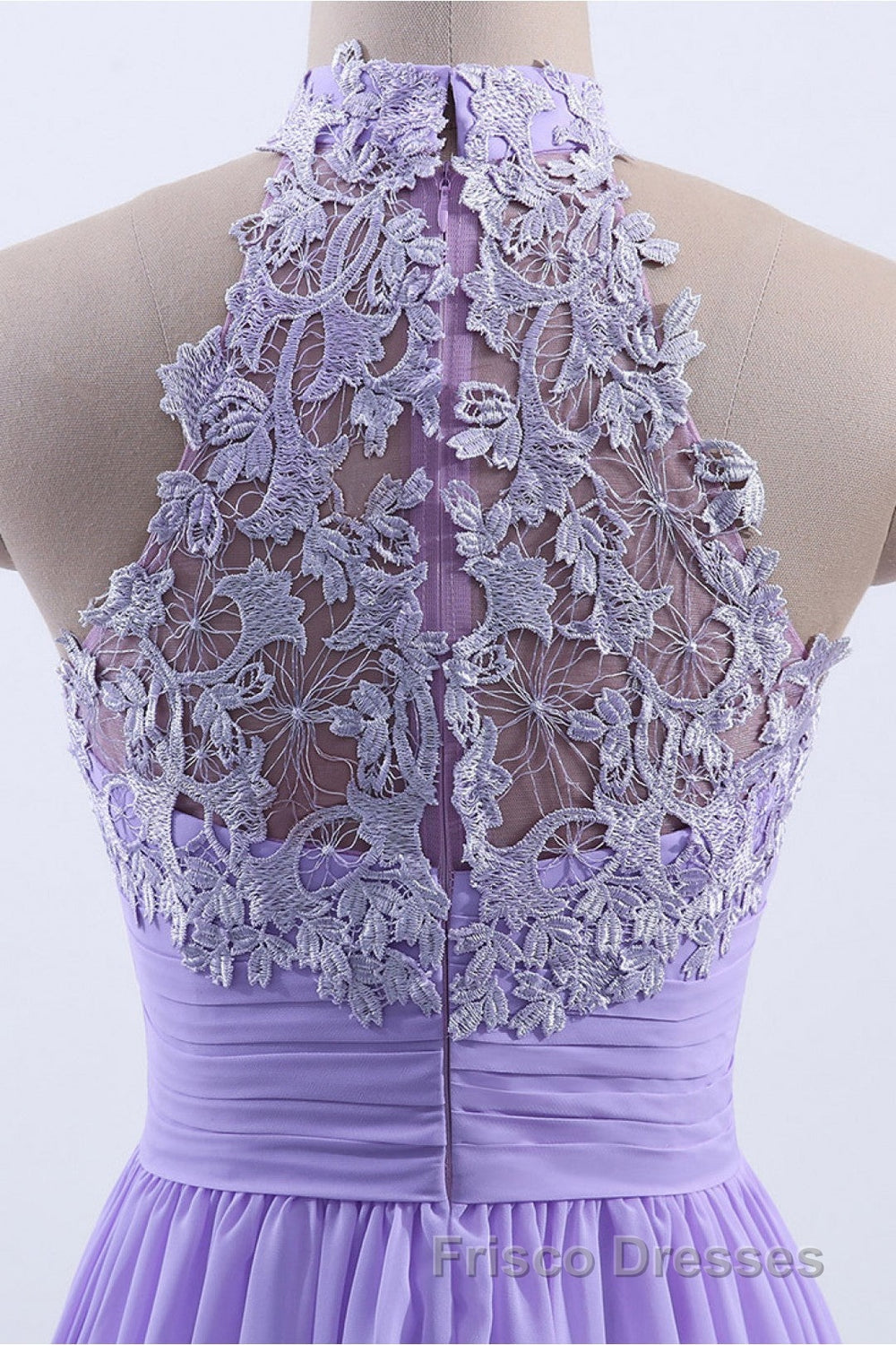 High Neck Lavender Chiffon Empire A-line Long Bridesmaid Dress