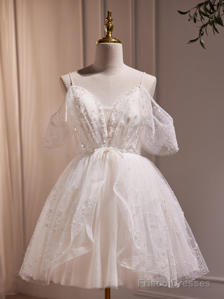 Ivory Knee Length V-Neckline Beaded Straps Party Dress, Ivory Homecoming Dress