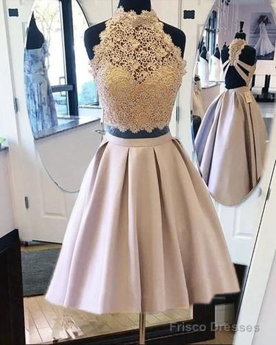 Lace Crop Satin Skirt Two Piece Homecoming Dress