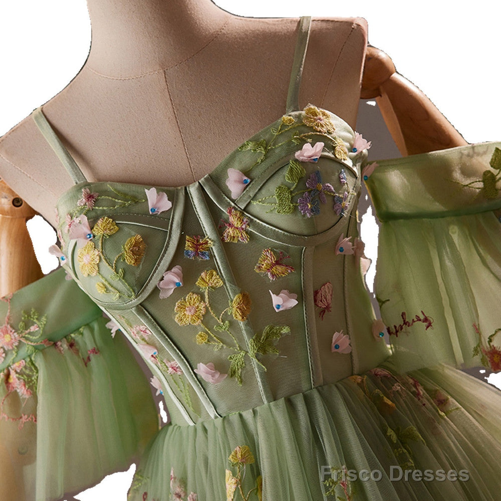 Light Green Sweetheart Tulle Floral Homecoming Dress, Green Short Prom Dress