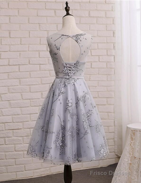 Light Grey Short Tulle With Applique Party Dress, Beautiful Homecoming Dresses
