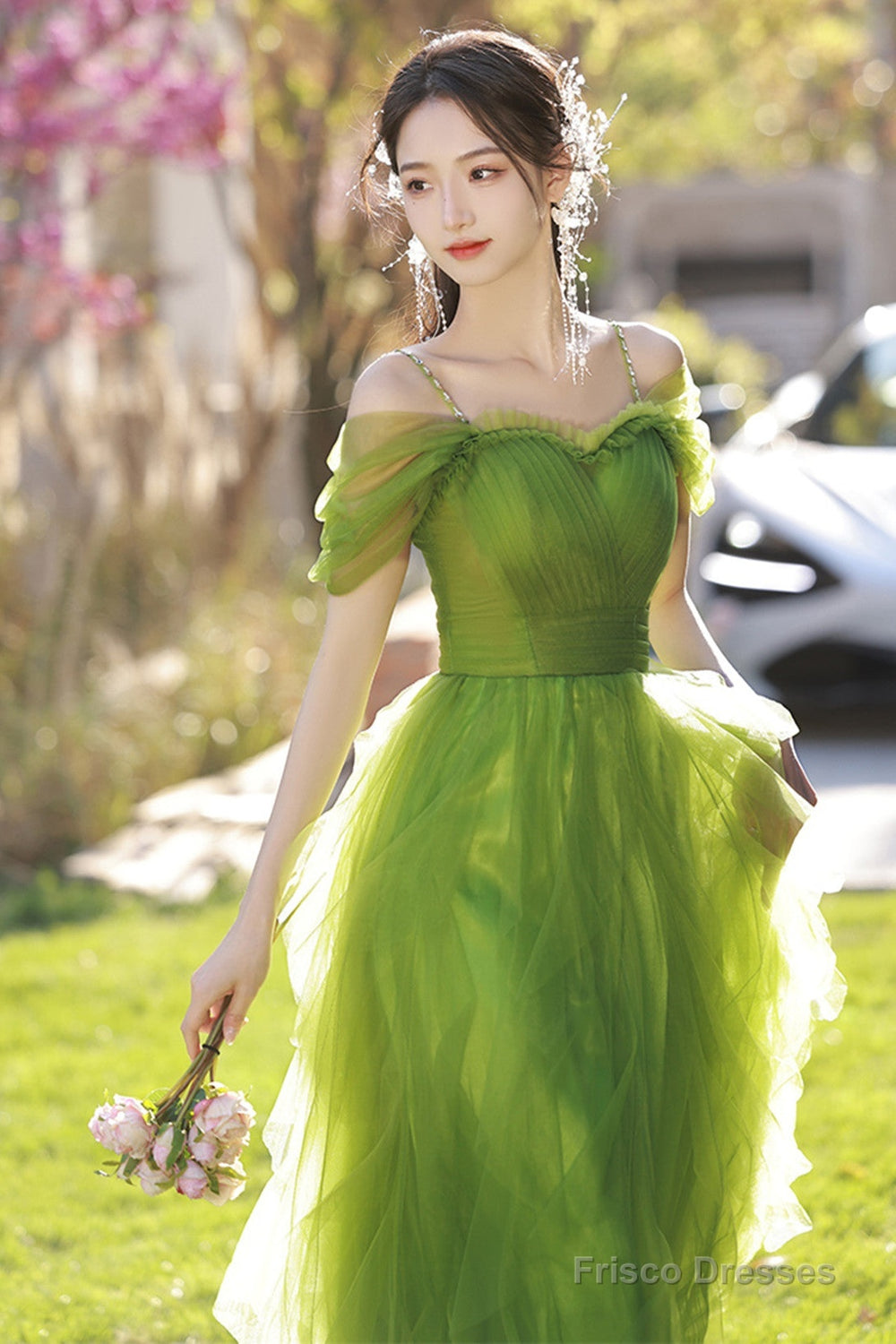 Lovely Green Tulle Beaded Straps Short Party Dress, Green Short Homecoming Dress