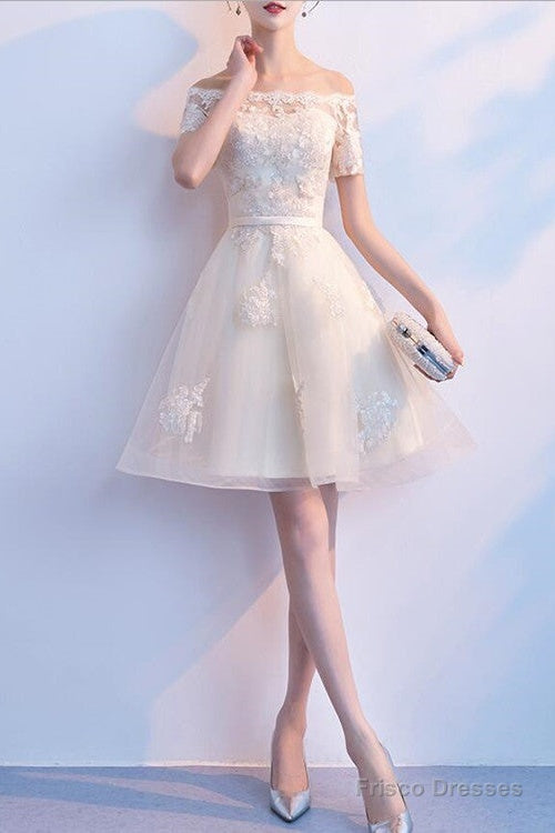 Lovely Ivory Organza Short Sleeves Party Dress, Cute Party Dress, Lovely Short Prom Dress