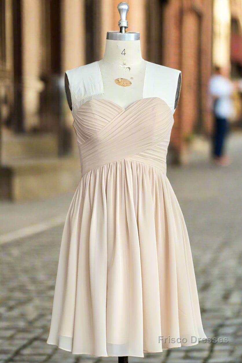 Lovely Short Chiffon Strapless Bridesmaid Dresses Sweetheart Homecoming Dress