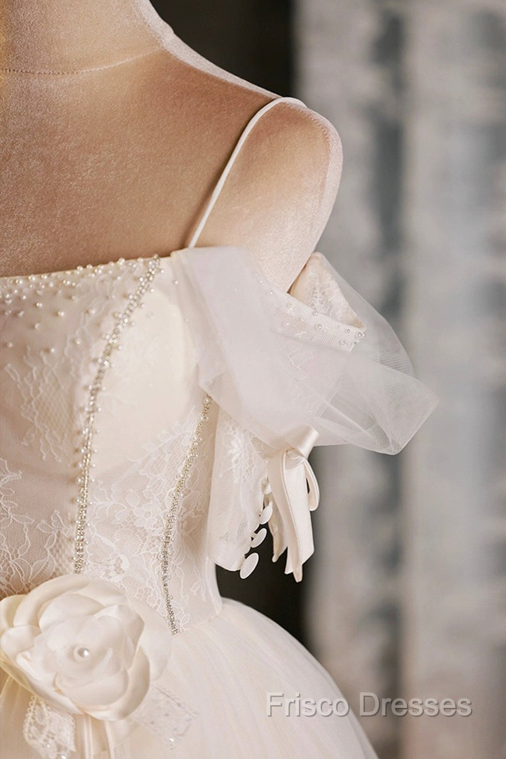 Lovely Spaghetti Strap Tulle Short Formal Prom Dress, Light Champagne A-Line Formal Party Dress