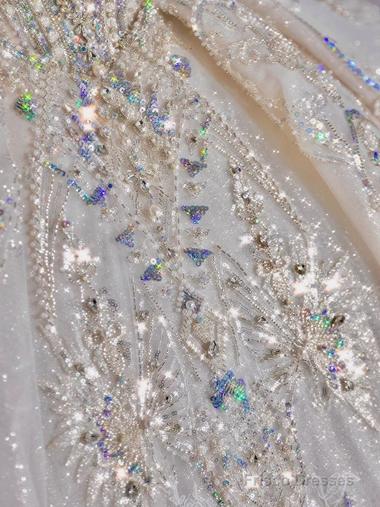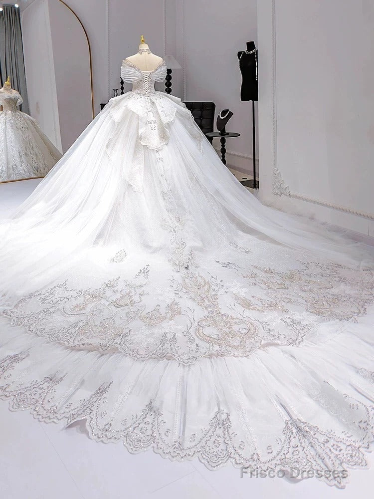 Luxury Ball Gown Off The Shoulder Short Sleeves Sequin White Wedding Dresses Brides Dress