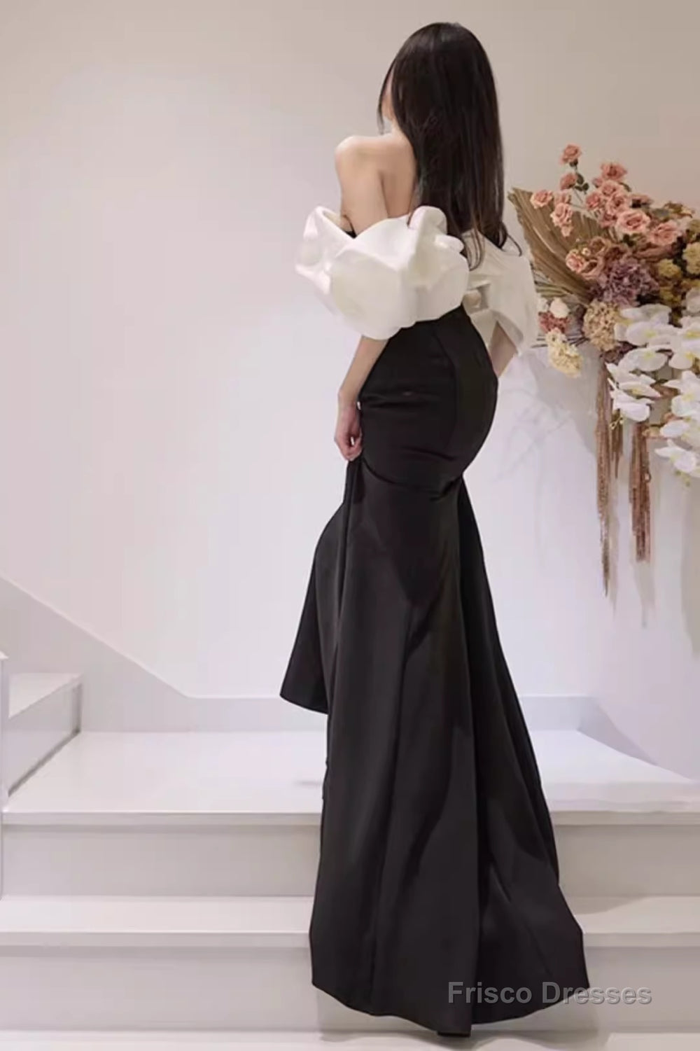 Mermaid Off The Shoulder Black Satin Long Prom Dresses