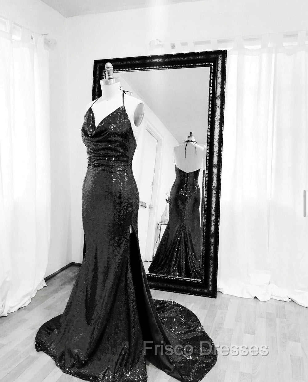 Mermaid Sequins Bridesmaid Dress Cowl Neck