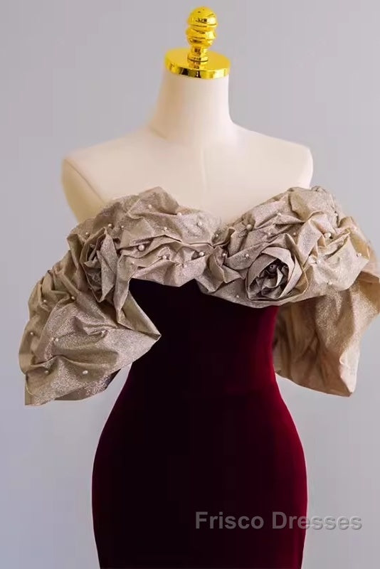 Mermaid Strapless Wine Red Long Formal Prom Dress