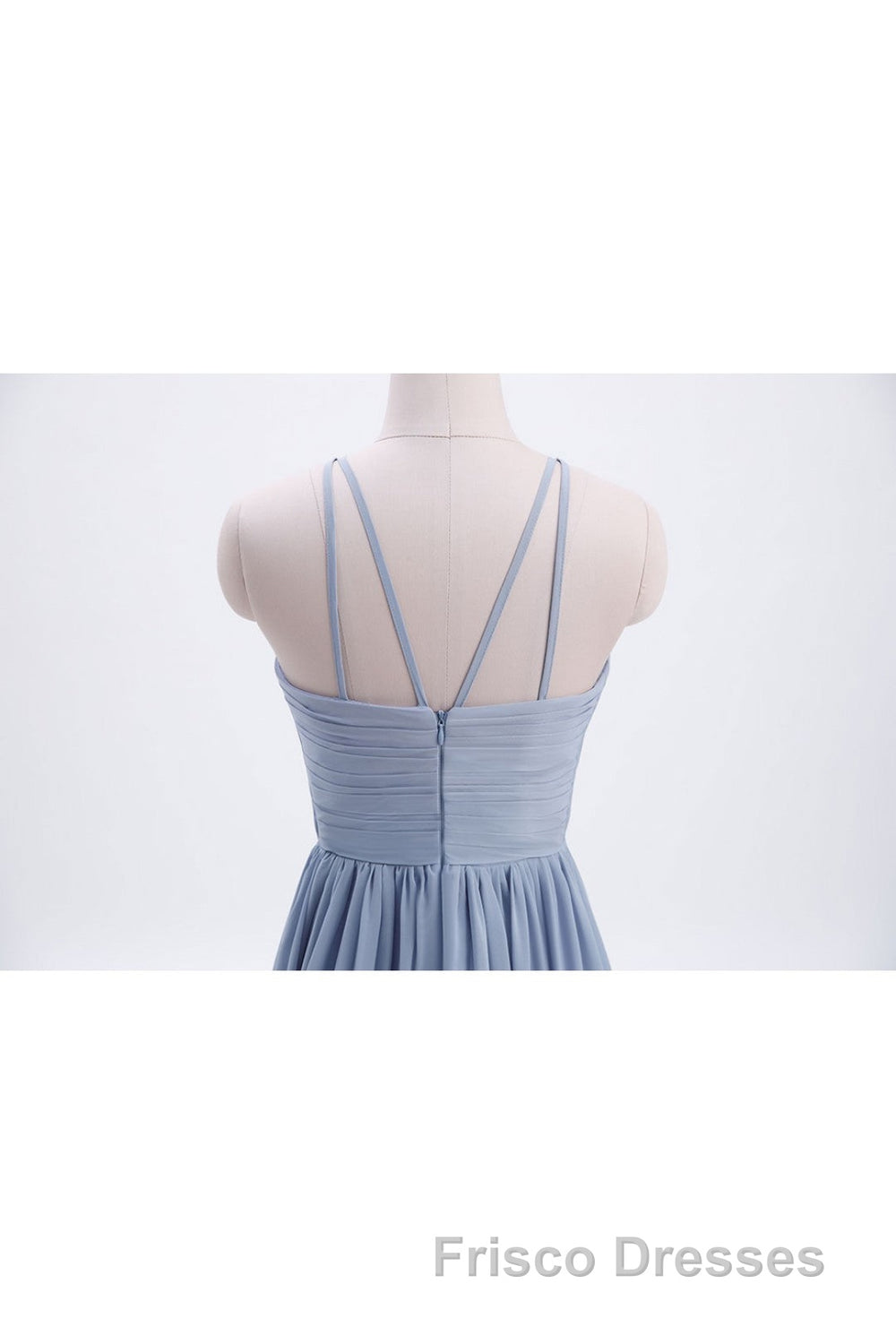Misty Blue Scoop Chiffon A-line Long Bridesmaid Dress