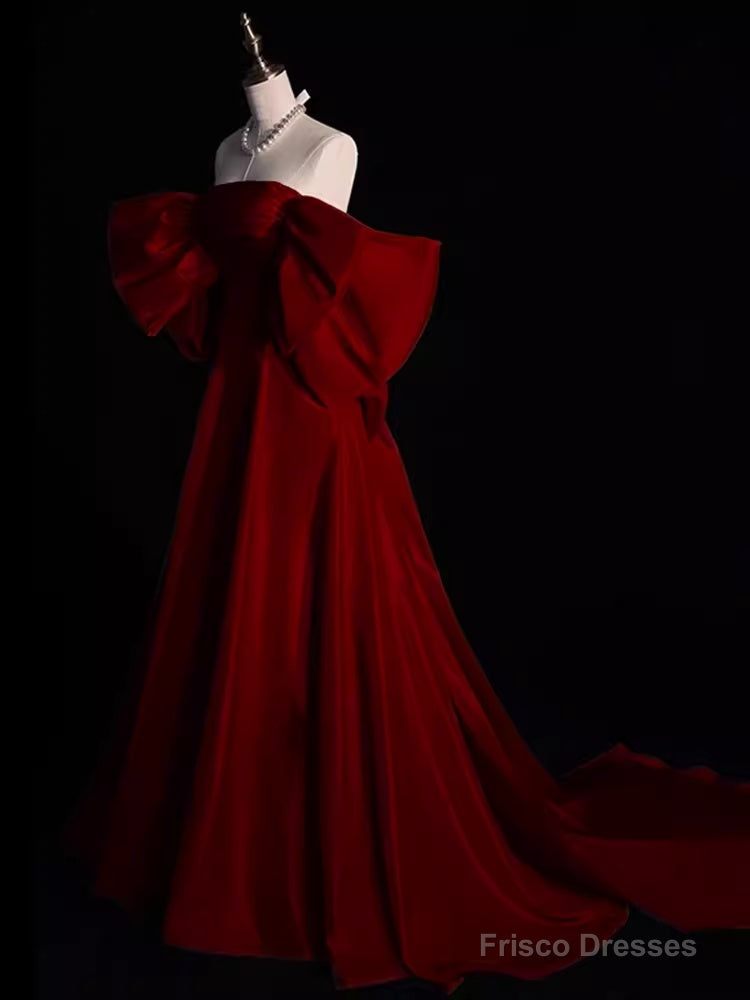 Modest A Line Strapless Long Short Sleeves Satin Red Prom Dresses