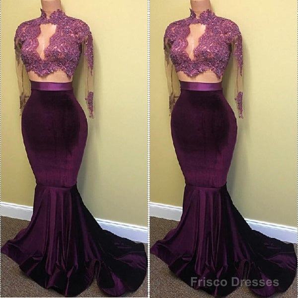 Modest Lace Long-Sleeve High-Neck Mermaid Prom Dresses