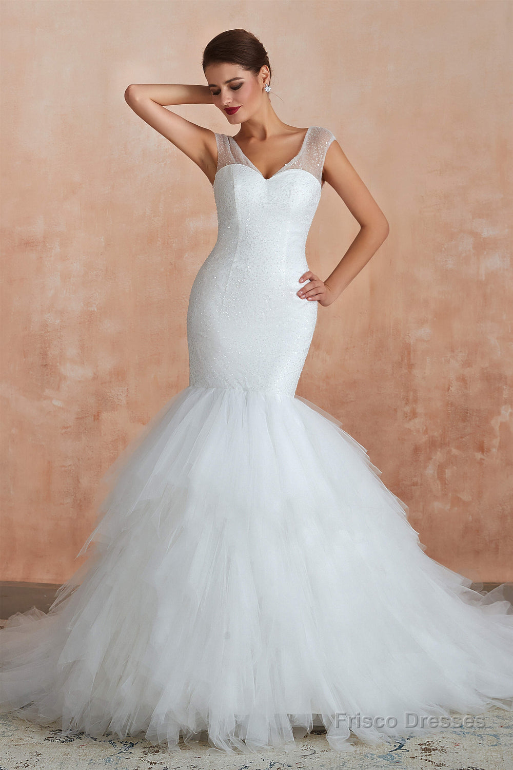 Multi-Tiered Lace-Up Mermaid Wedding Dresses with Chapel Train