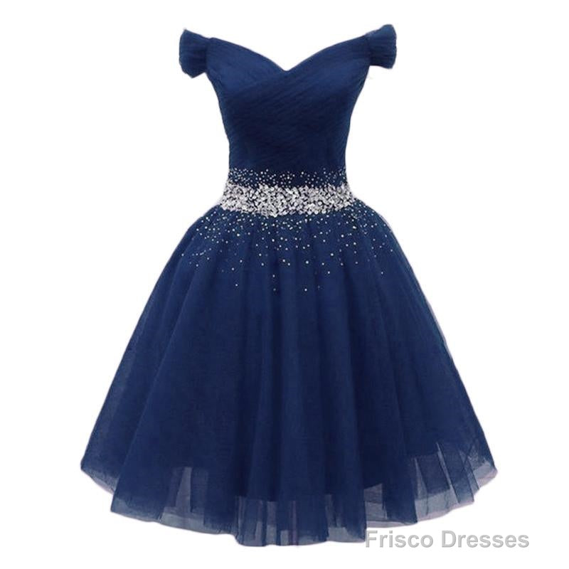 Navy Beaded Sweetheart Off Shoulder Tulle Homecoming Dress