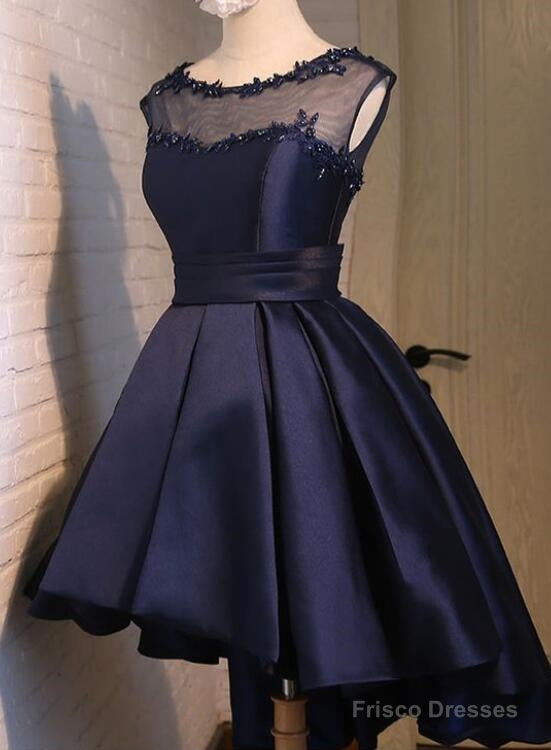 Navy Blue High Low Homecoming Dresses, Lovely Teen Formal Dress, Evening Party Dress Short