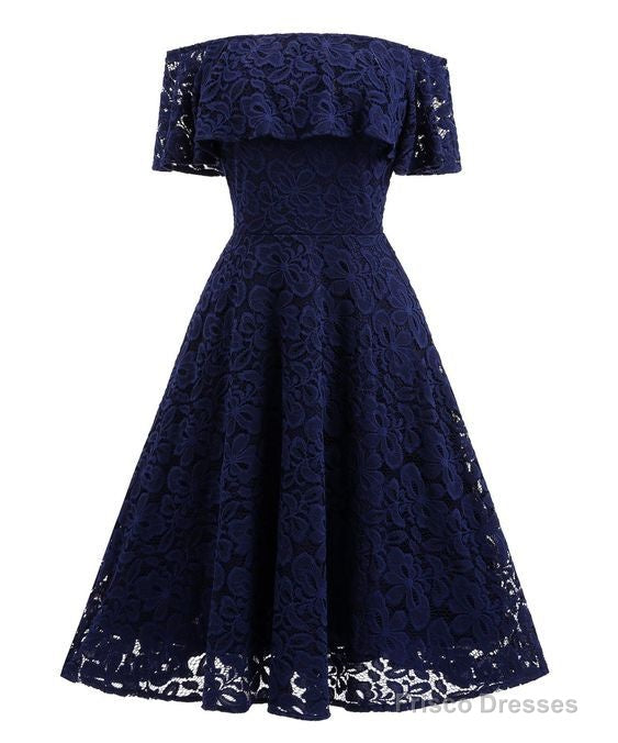 Navy Blue Short Soft Lace Prom Dress Off Shoulder Women Party Gowns
