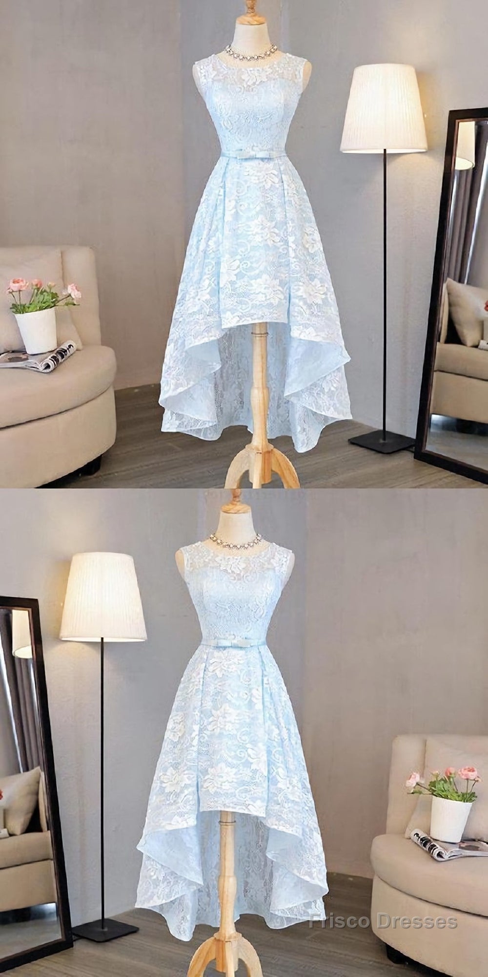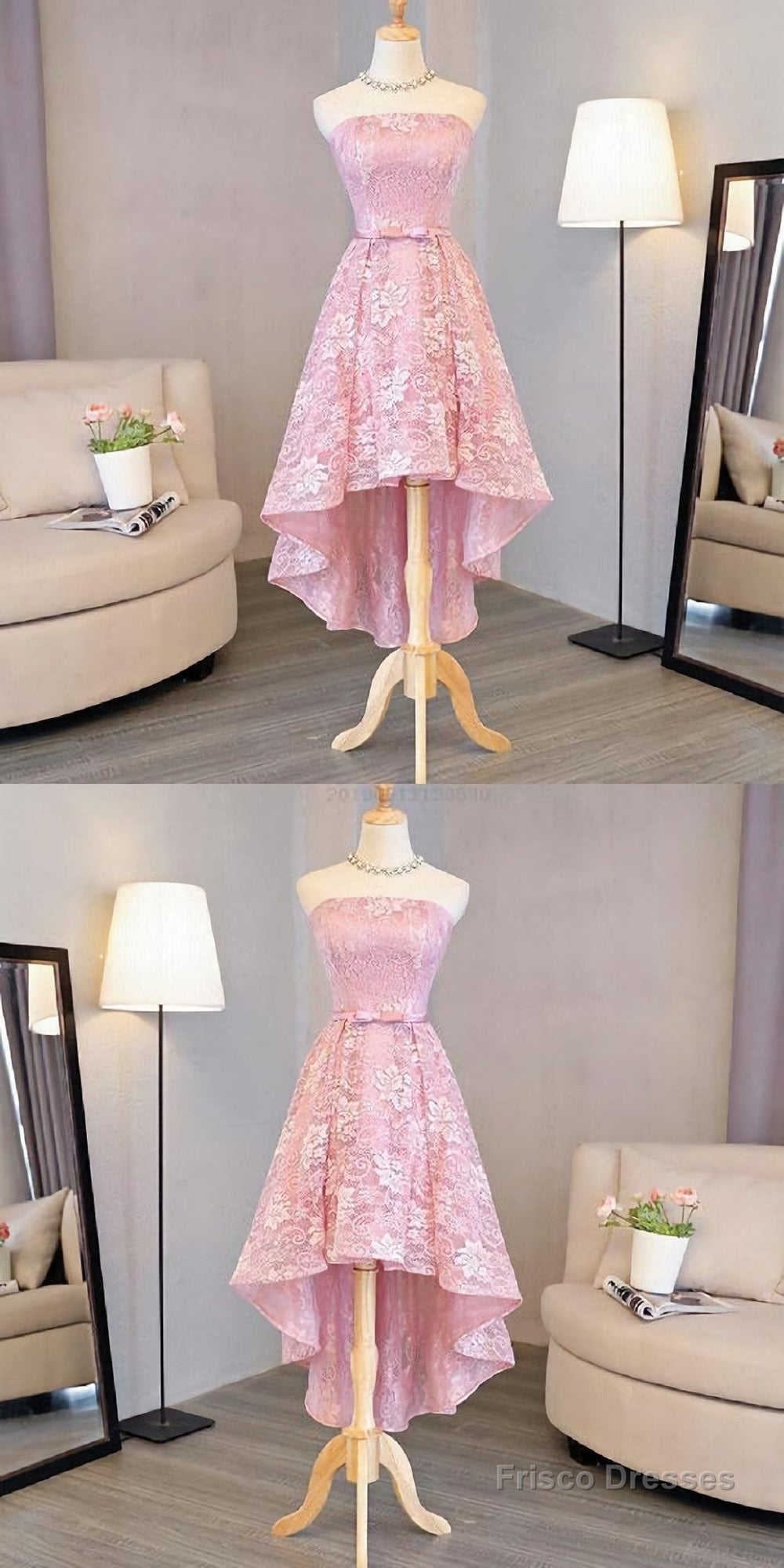 Nice Pink High Low Lace Dress, Pink High Low Dress, Lace Dress, Homecoming Dress