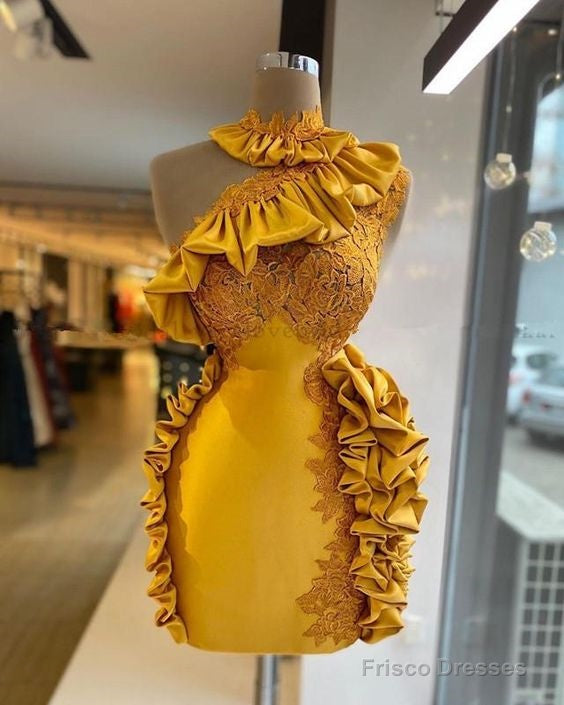 One Shoulder Ruffles Short Homecoming Dress Vestidos De Cocktail Real Images Knee Length African Girl Party Gowns
