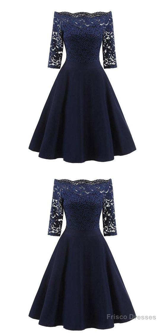 Perfect Navy Blue Homecoming Dress,Off The Shoulder Homecoming Dresses