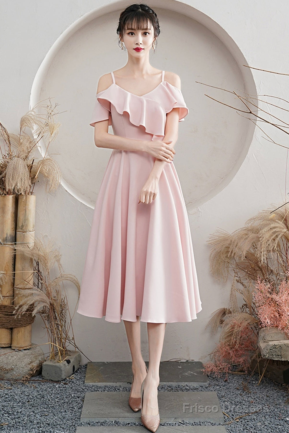 Pink A line short prom dress pink party dress