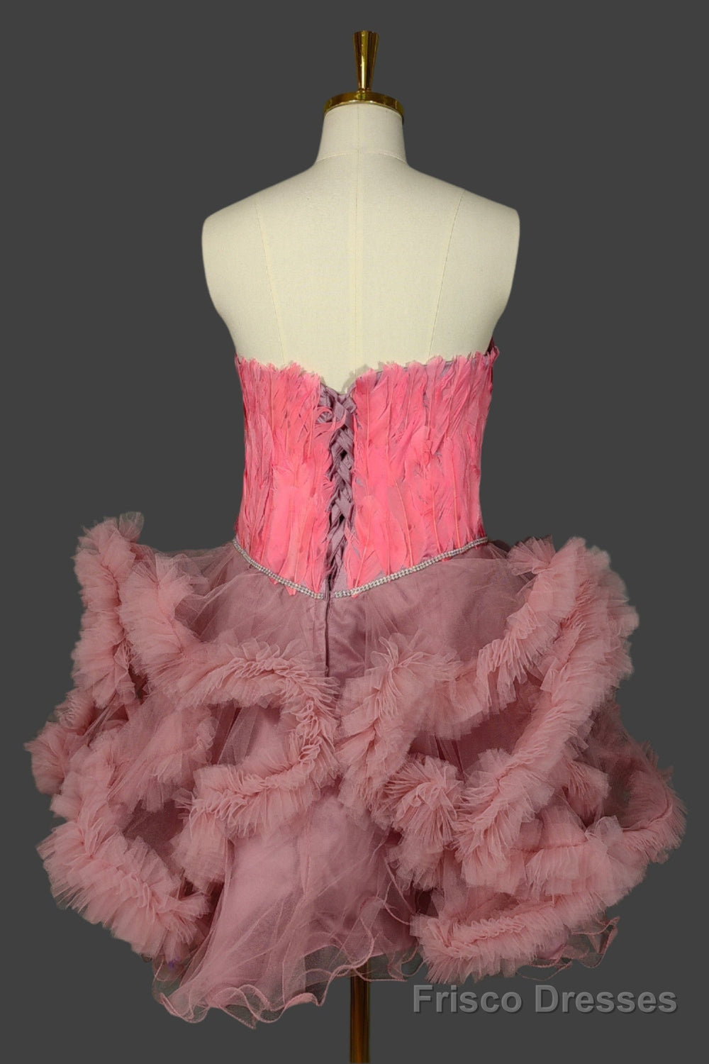 Pink Homecoming Dresses Sweetheart Neck Short Prom Dresses A Line Party Dress with Feather