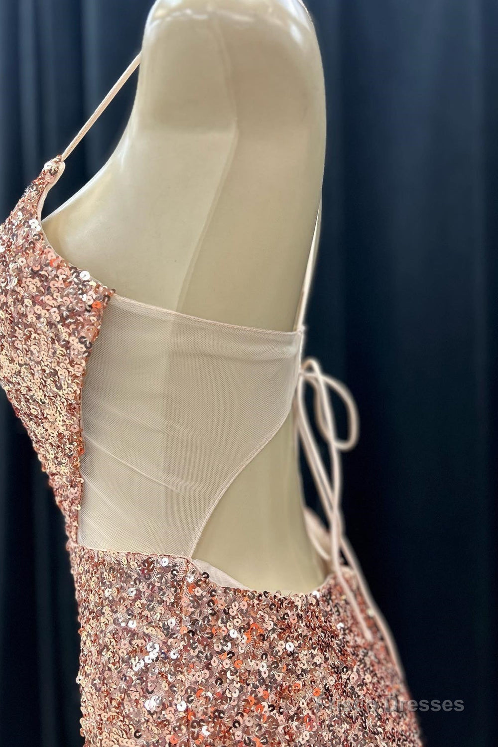 Pink Mermaid V Neck Lace-Up Back Sequins Long Prom Dress with Slit