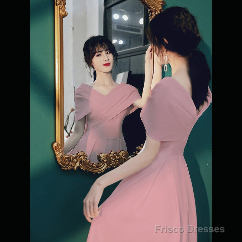 Pink Tea Length Wedding Party Dresses, Pink Bridesmaid Dresses