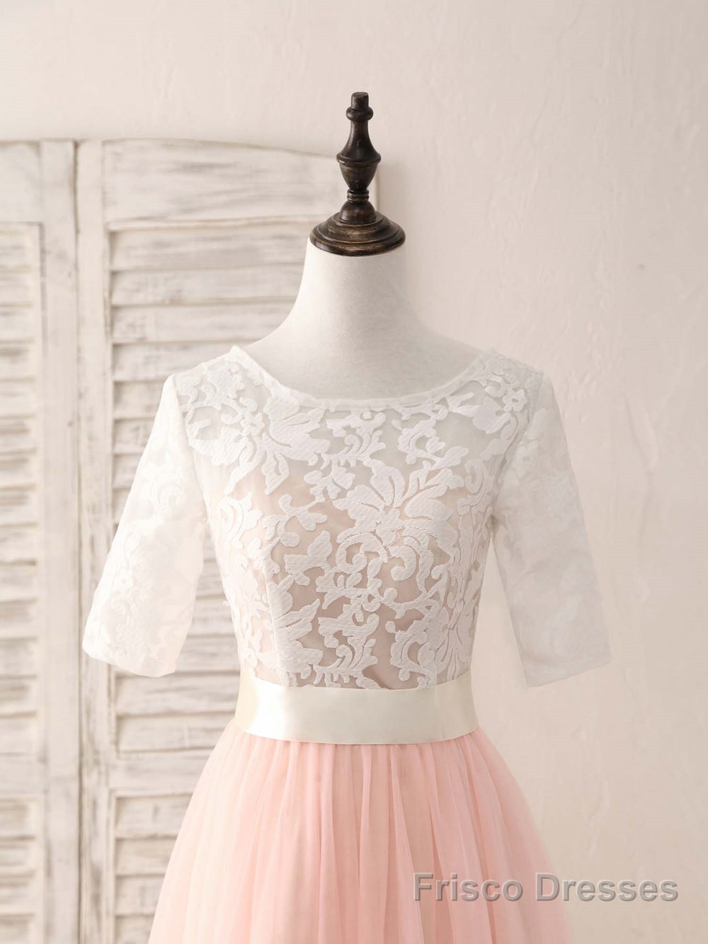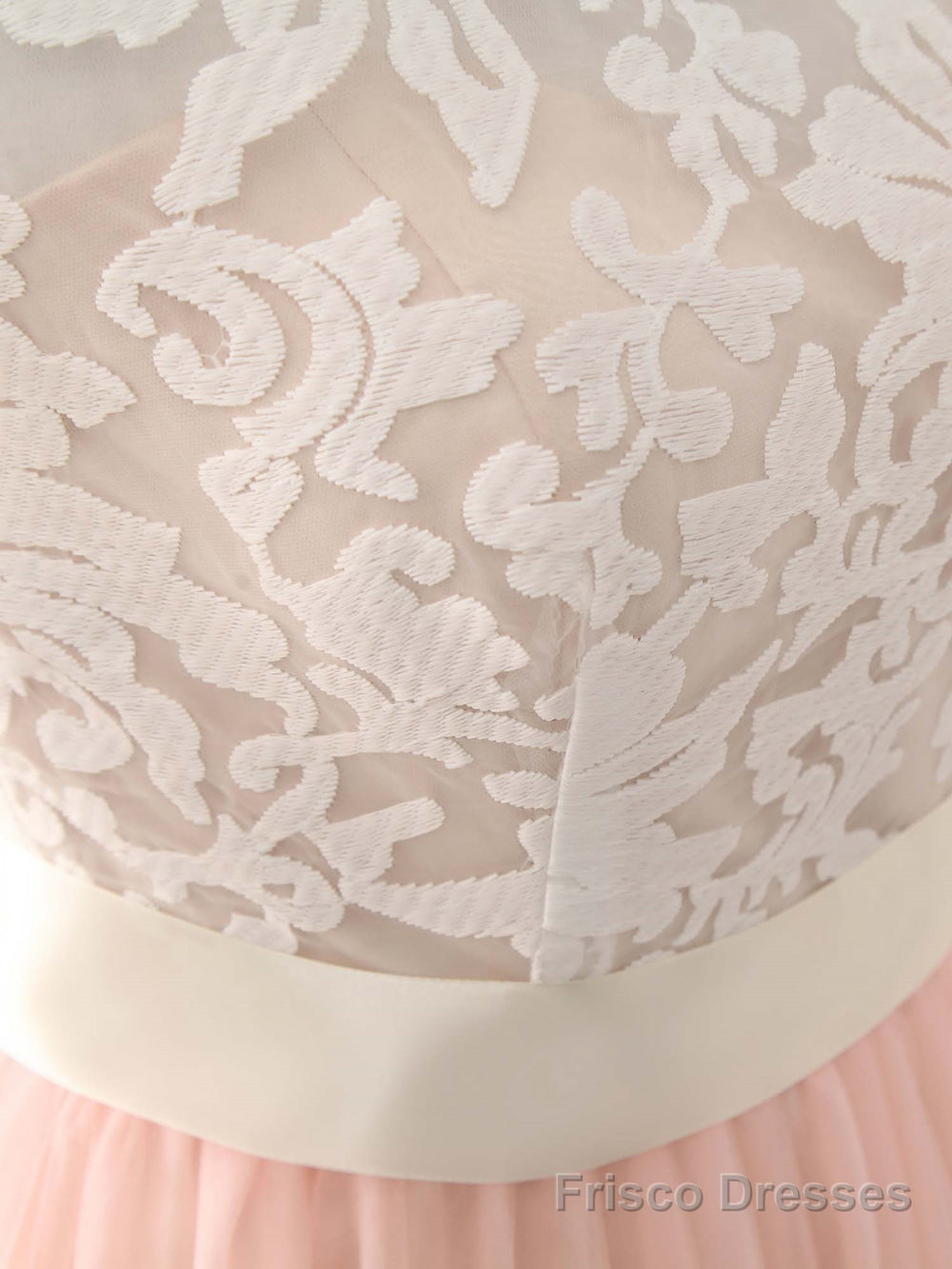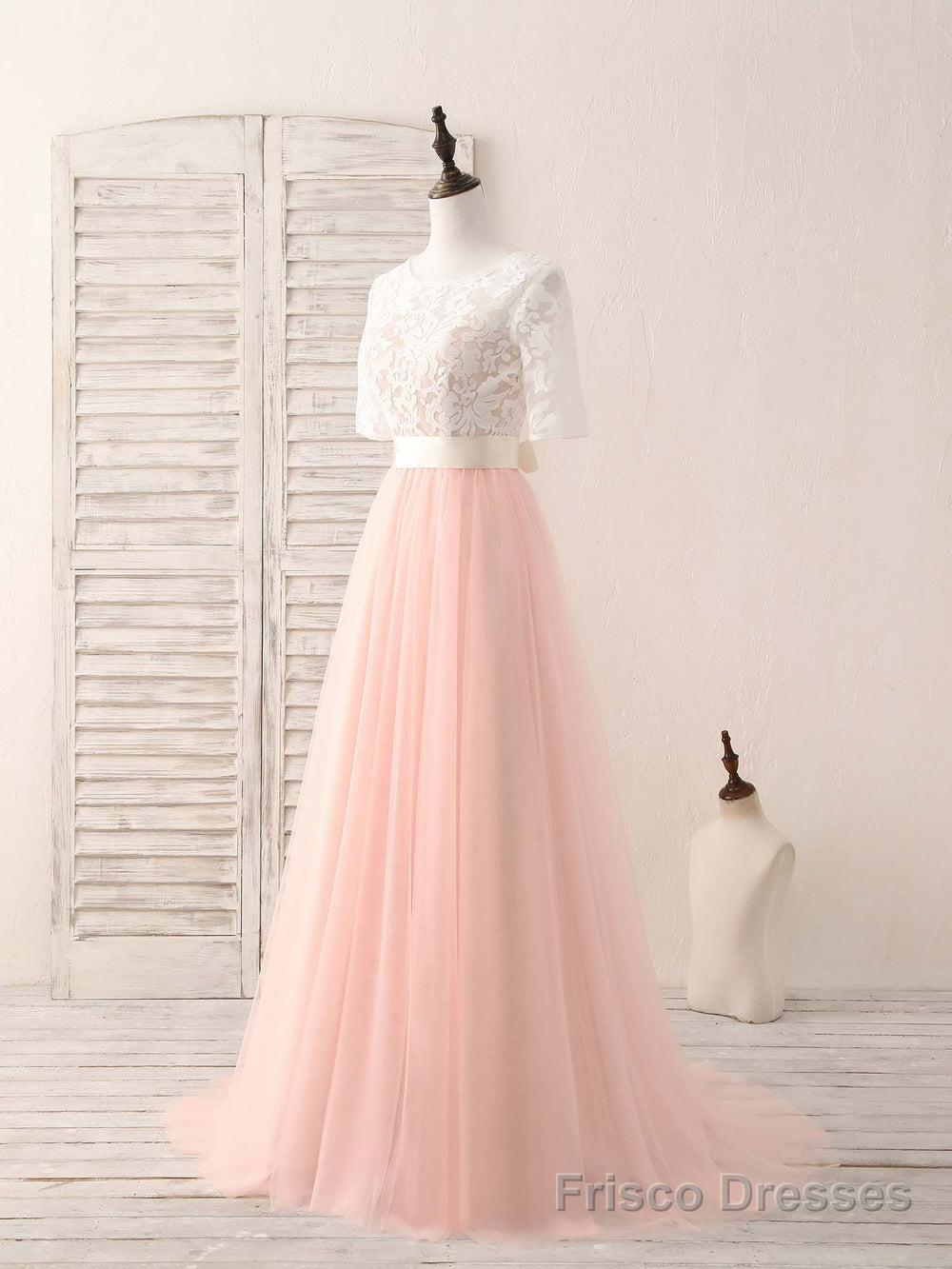 Pink Tulle Lace Long Prom Dress Pink Bridesmaid Dress