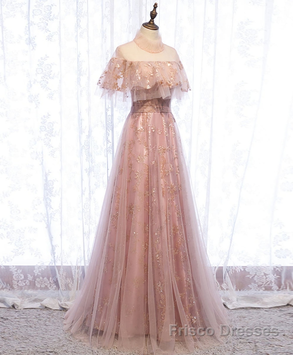 Pink Tulle Lace Long Prom Dress, Pink Tulle Formal Dress, 2