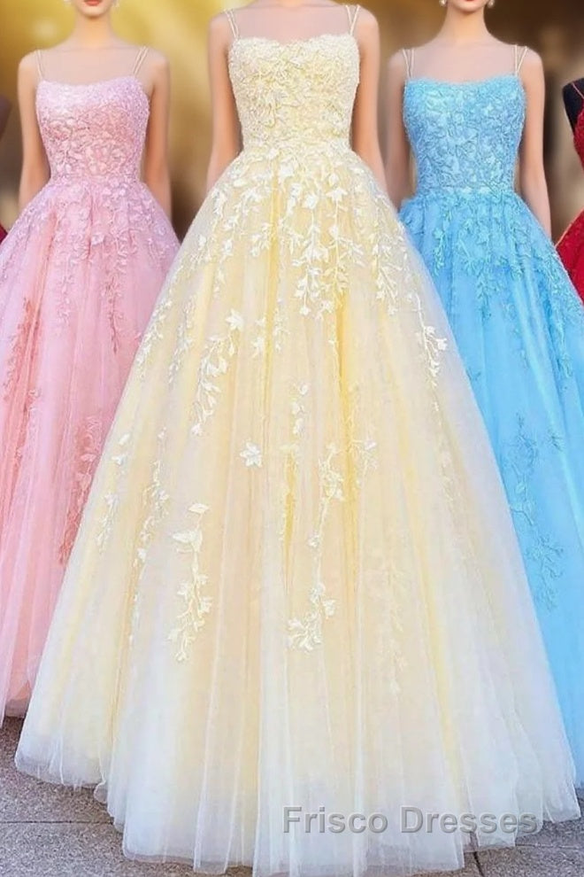 Princess Straps Long Formal Prom Dress with Lace Appliques