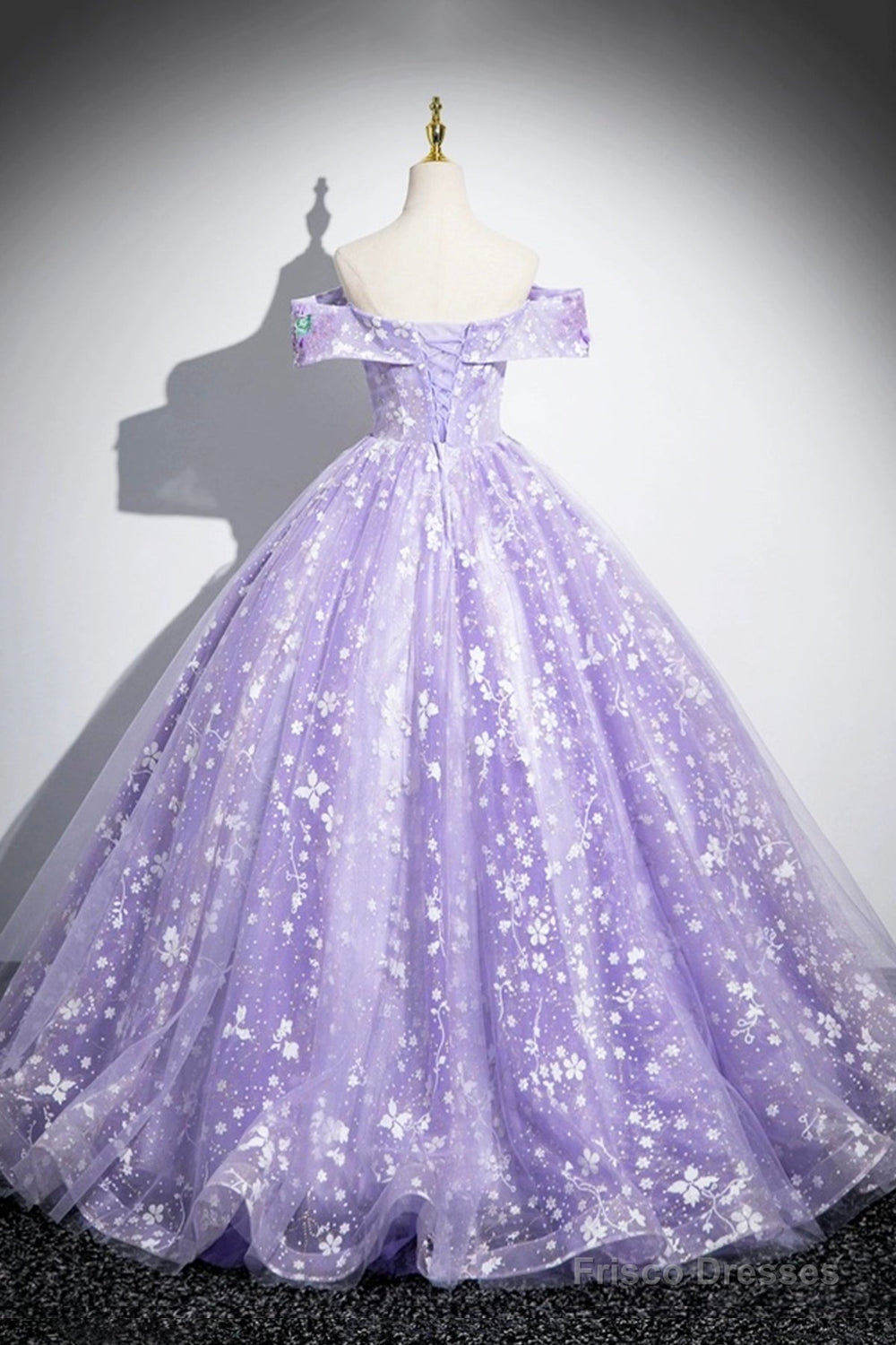 Purple Off Shoulder Lace Floor Length Party Dress, Beautiful Sweet 16 Dress Party Dress