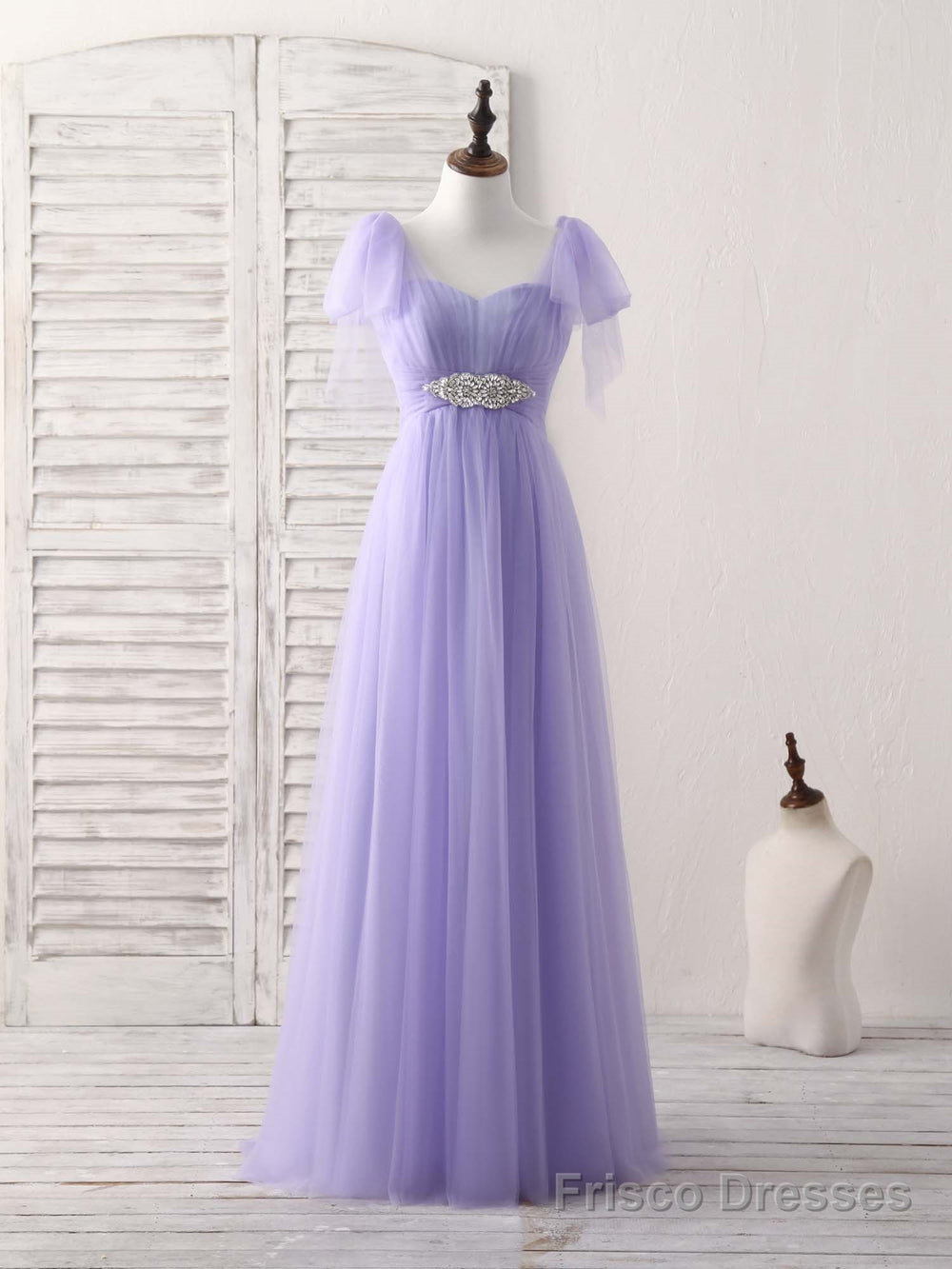 Purple Sweetheart Neck Tulle Long Prom Dress Purple Bridesmaid Dress