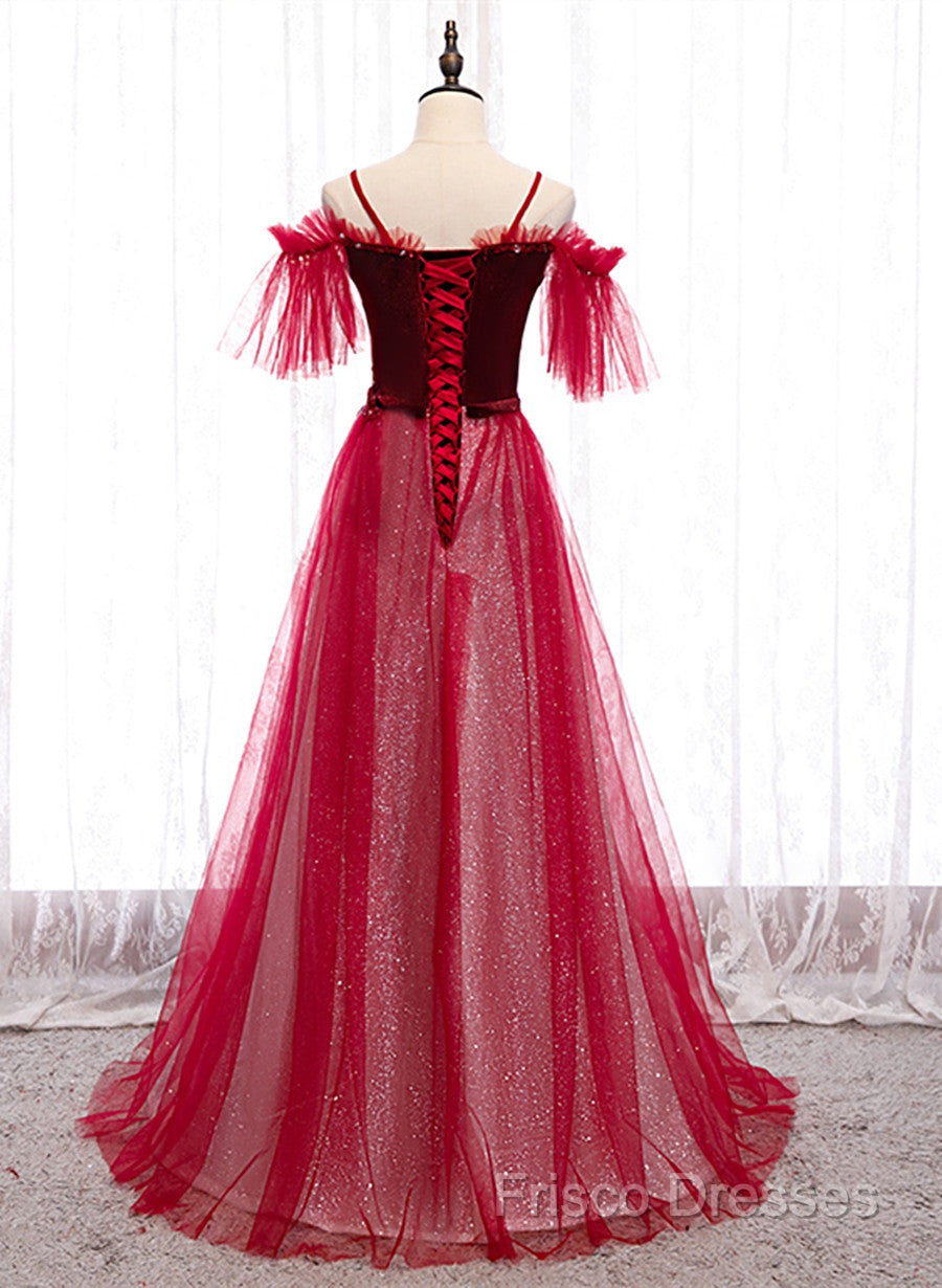 Red A-Line Floor Length Off Shoulder Long Formal Prom Dress, Red Long Formal Dress
