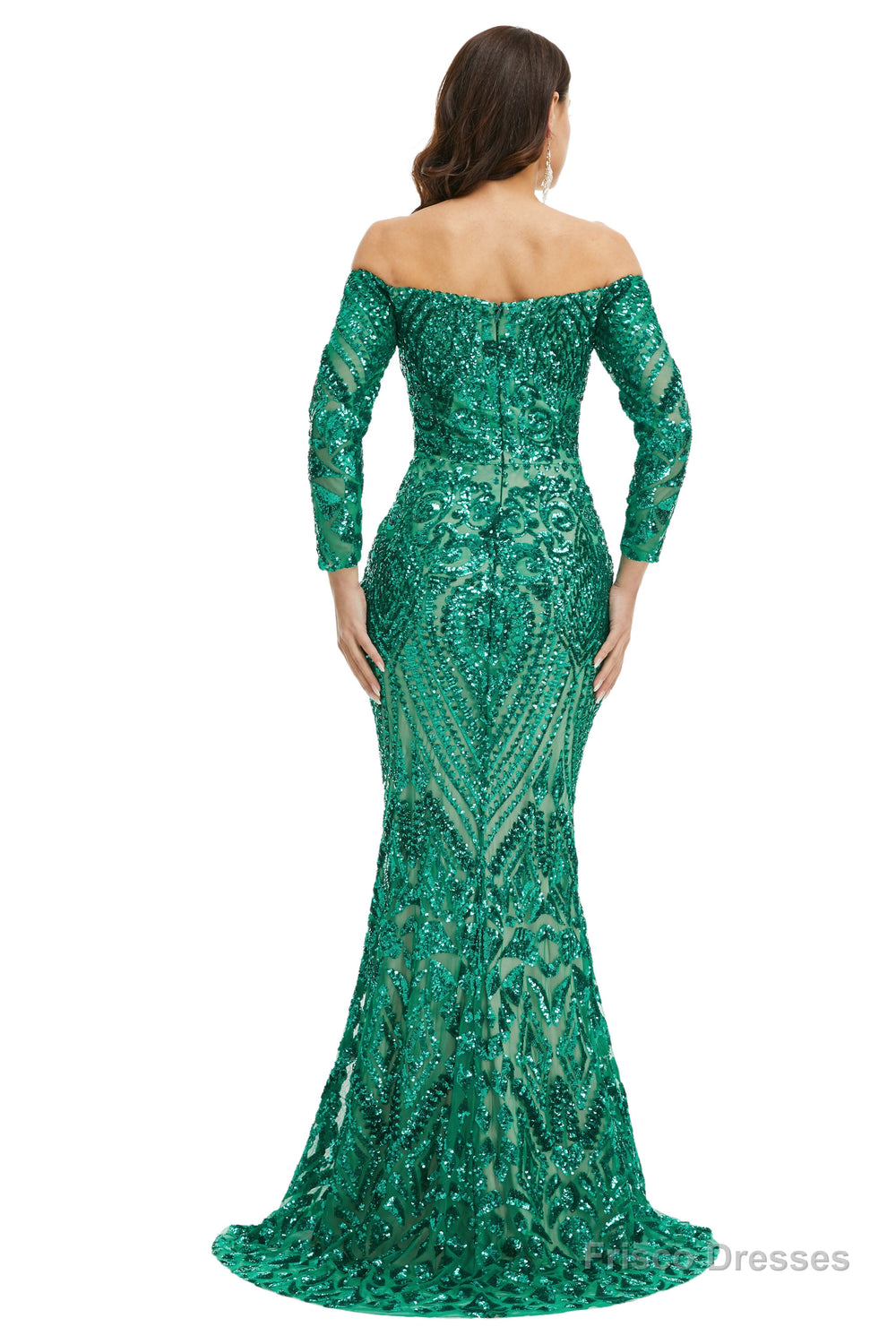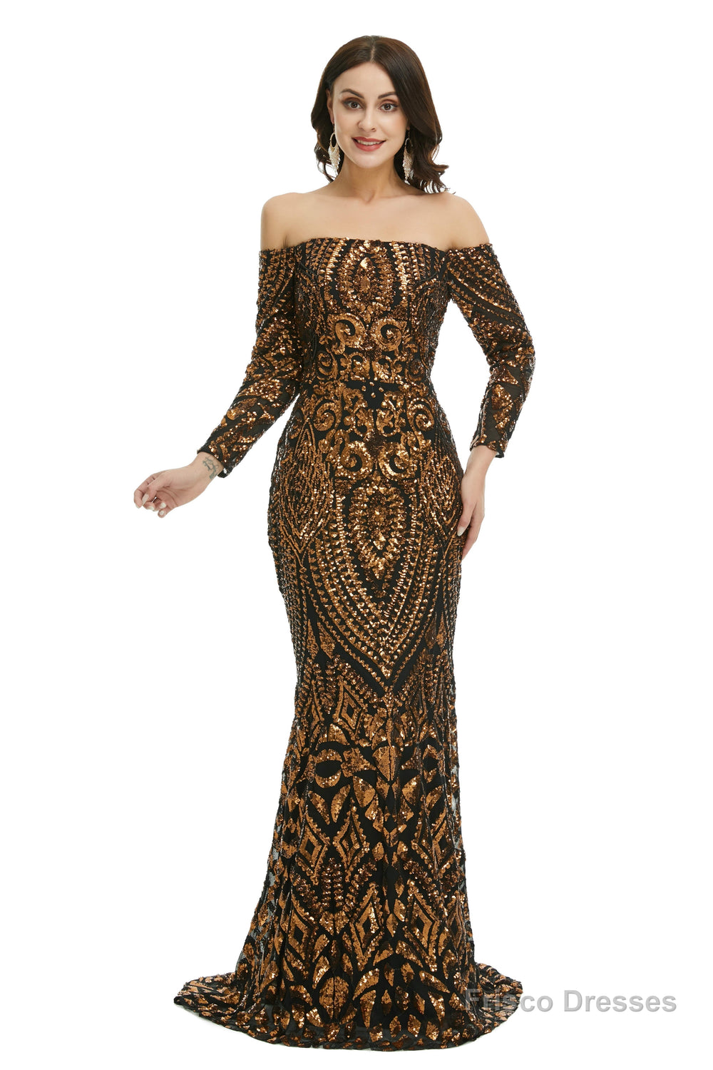 Sequins Mermaid Long Sleeves Off the Shoulder Evening Dresses