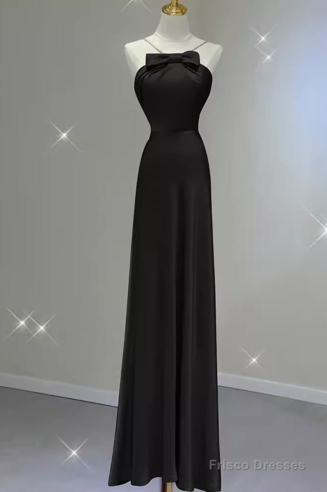 Sexy A Line Halter Long Black Satin Prom Dress
