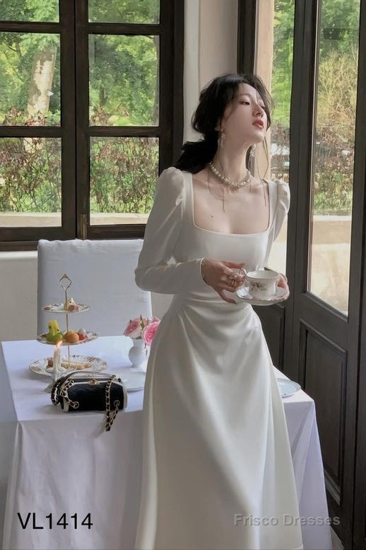 Sexy A Line Square Neckline Long Sleeves White Prom Dress