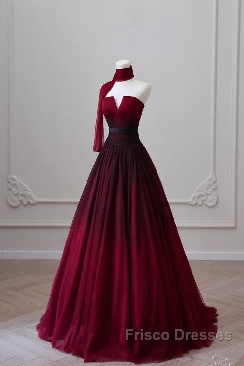 Sexy Ball Gown Strapless Long Burgundy Formal Prom Dress Evening Dress