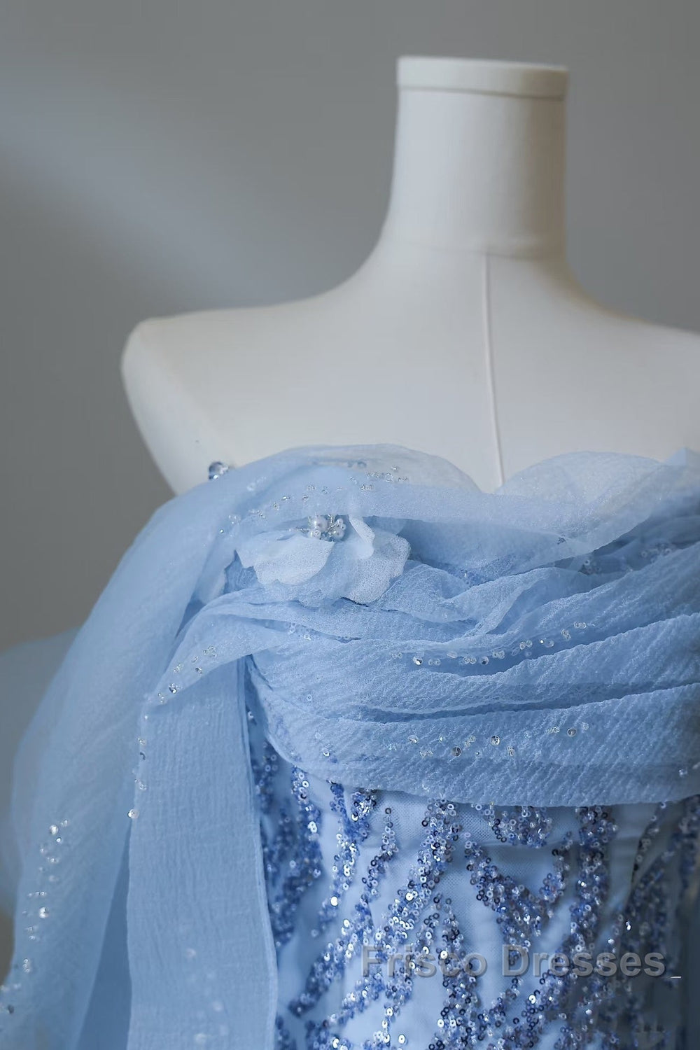 Sexy Mermaid Off The Shoulder Blue Sequin Long Formal Prom Dress Evening Gowns
