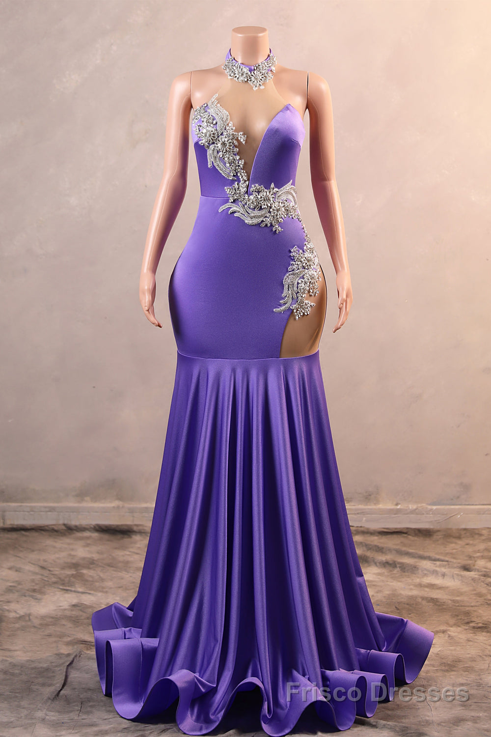 Sexy Purple Mermaid Prom Dresses Heavily Beading Women Evening Dresses Halter Neck