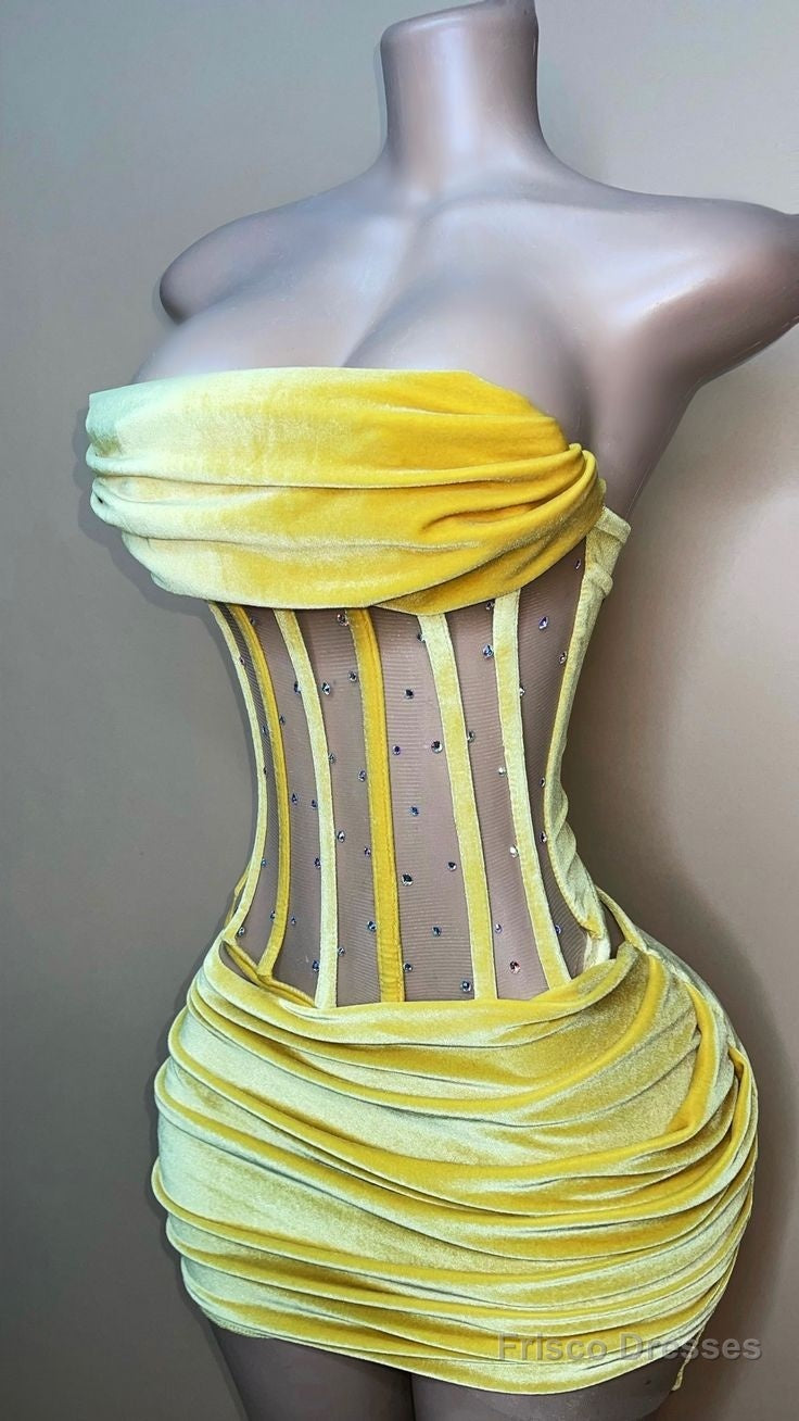 Sexy Strapless Yellow Velvet Prom Dress ,Charming Homecoming Dress