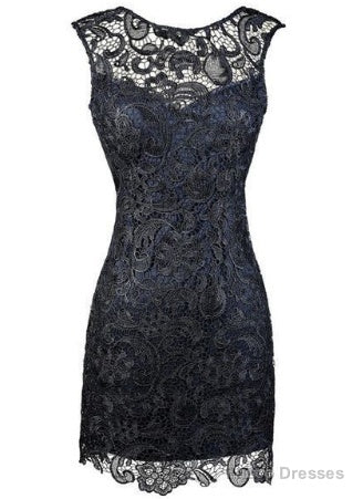 Sheath Bateau Backless Short Homecoming Navy Blue Lace Mother Of The Bride Dress