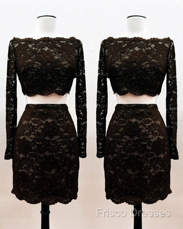 Short Black Lace Two Piece Formal Prom Dress