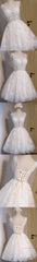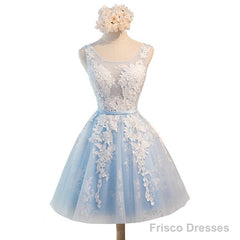 Short Blue Floral Prints Appliques Sleeveless Scoop Neckline Lace Up Back For Teen Lovely Homecoming Dress