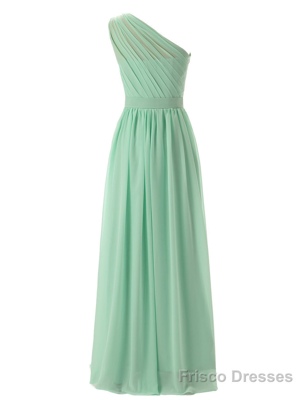 Simple A-Line Chiffon Ruched Mint Green Long Bridesmaid Dress