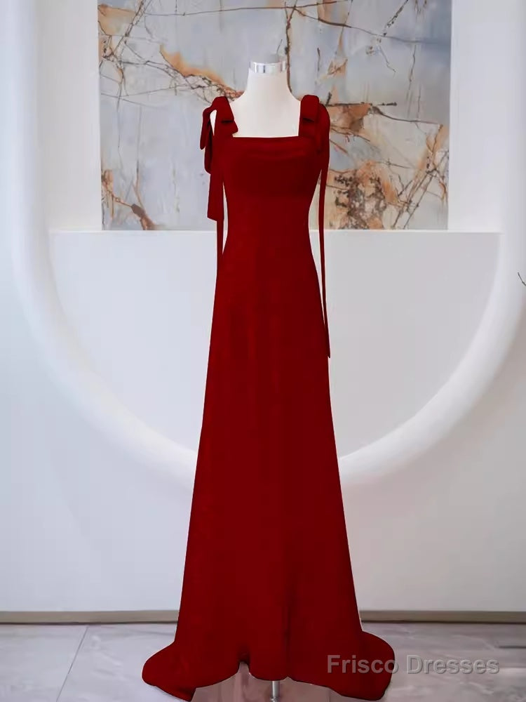 Simple A Line Straps Long Red Prom Dress Evening Dress