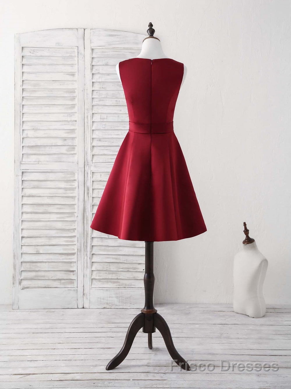 Simple V Neck Burgundy Short Prom Dress Satin Homecoming Dress