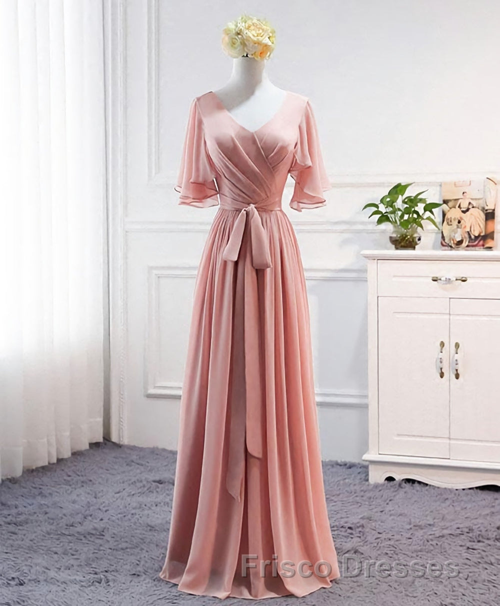Simple V Neck Chiffon Long Formal Prom Dress, Bridesmaid Dress
